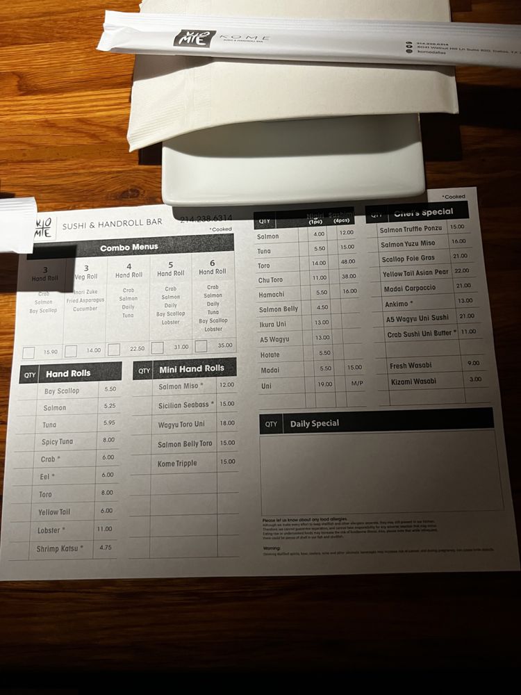 Welcome to Komé, a culinary haven nestled in Dallas, TX, where sushi transcends the ordinary. Komé's menu showcases an artful blend of fresh, beautifully crafted sushi, handrolls, and innovative dishes that promise to tantalize your taste buds. Highlights include the mango salmon and scallop foie gras, each bursting with flavor and visually stunning.